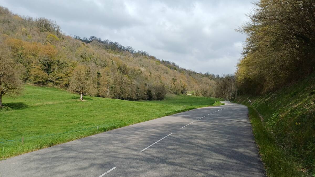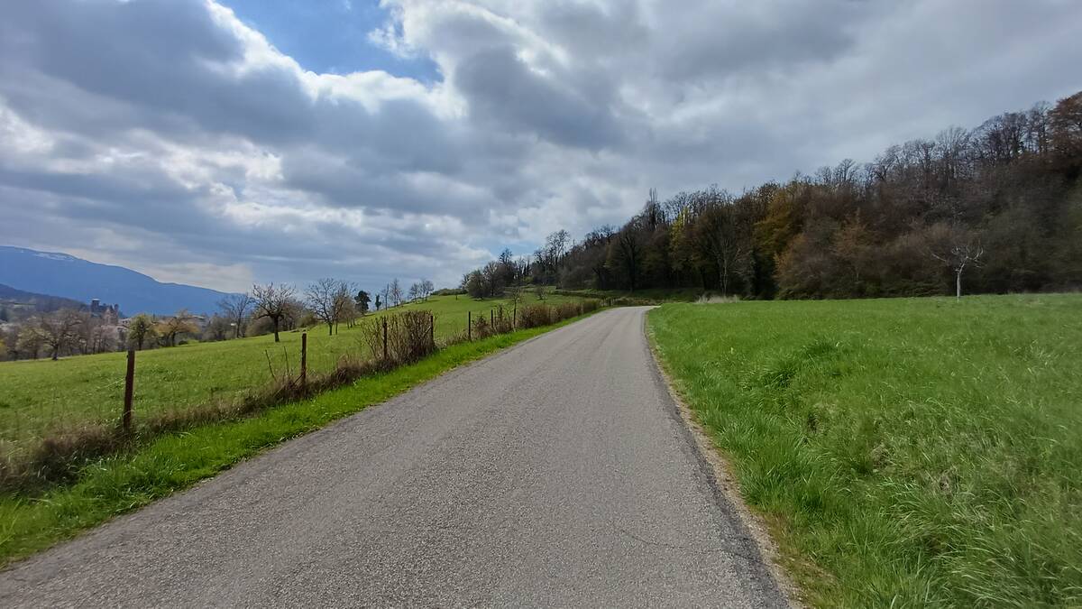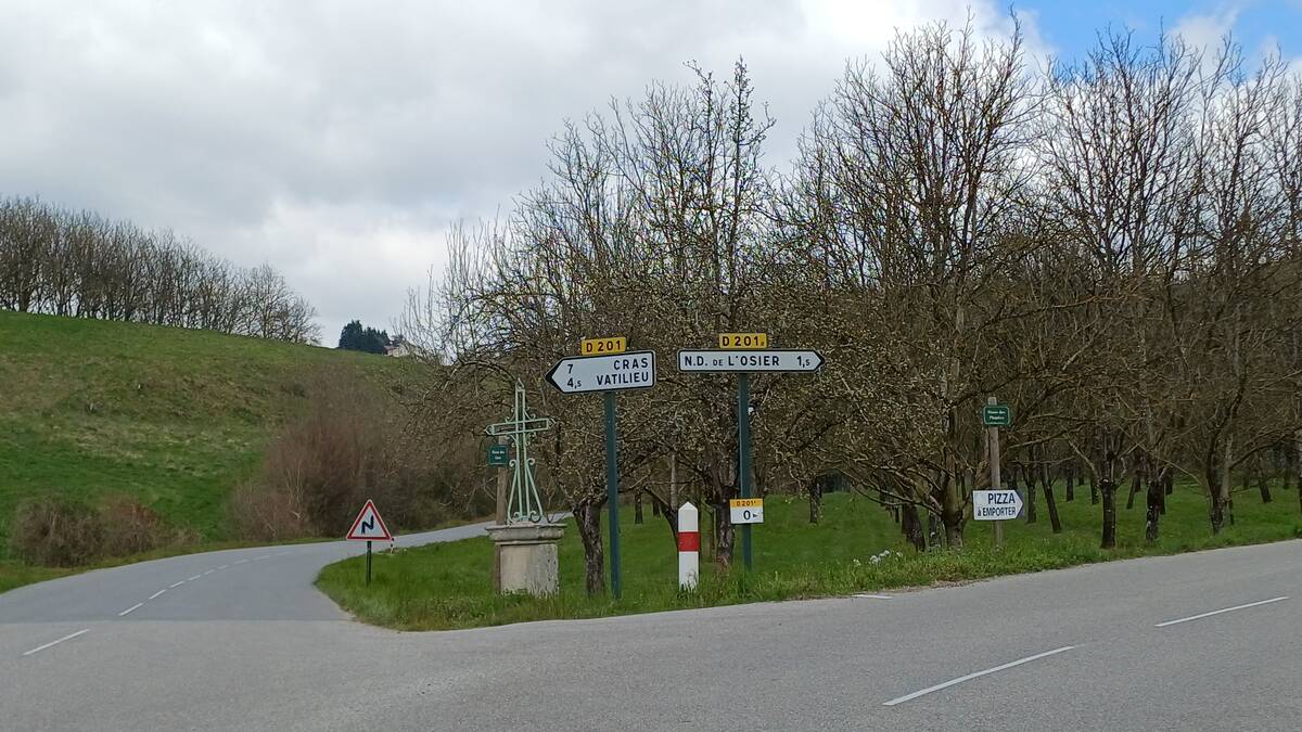 Ici, le regard ne porte jamais loin. La route tourne sans cesse. Si au départ la pente est très modérée, ça va changer dès que l'on bifurque en direction de Vatilieu par la D 201 et que l'on amorce une succession de quatre épingles. Avec le vent contraire, ça devient assez difficile. Aucun panneau ne mentionne le col. La route continue de monter pour atteindre le village de Vatilieu.