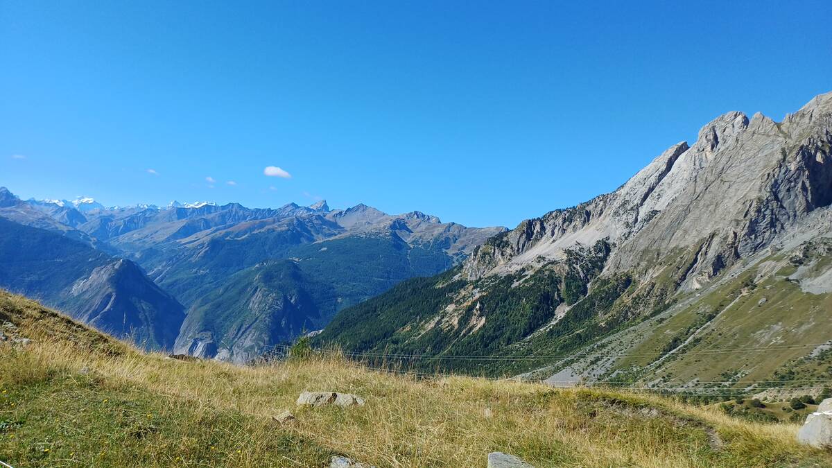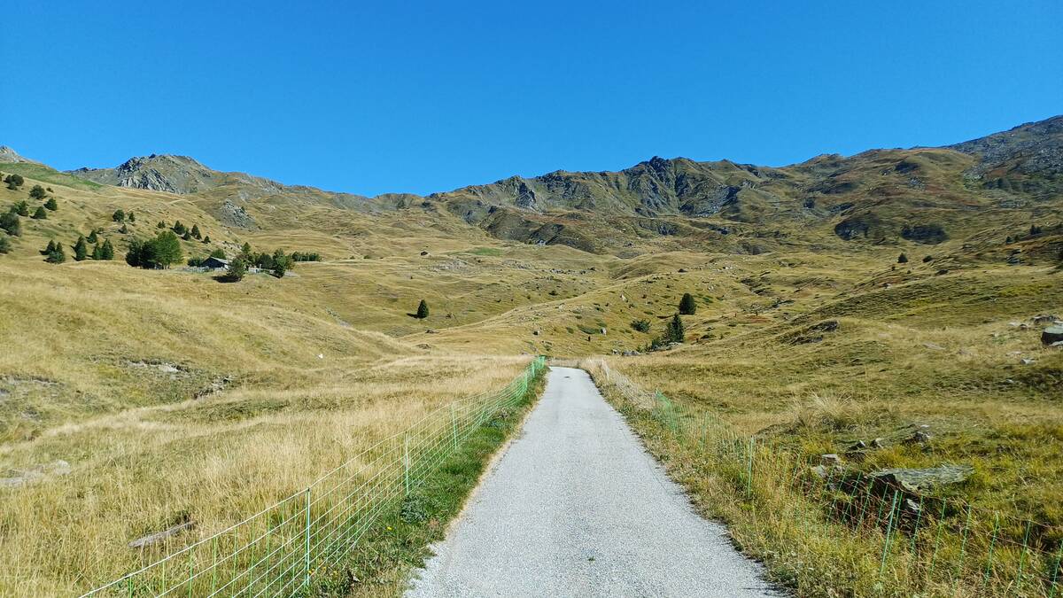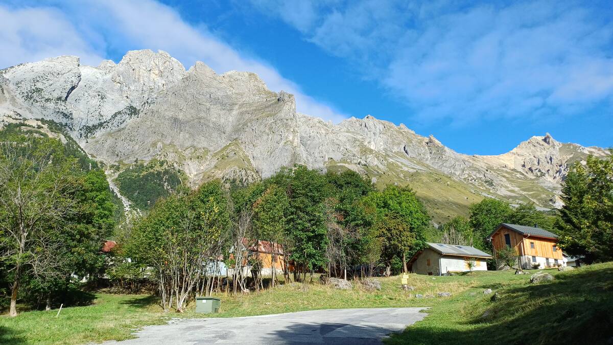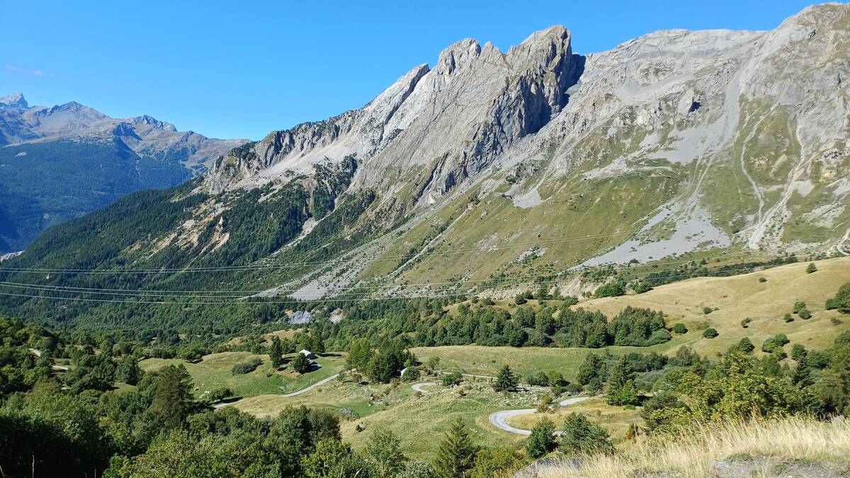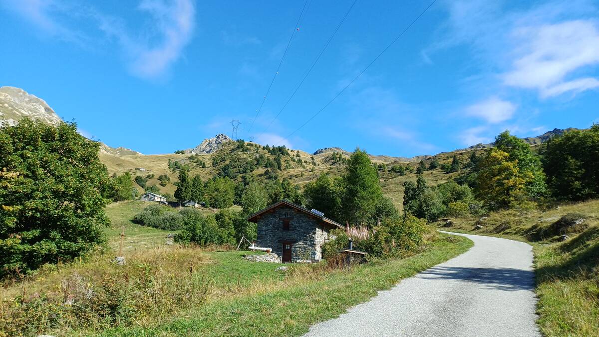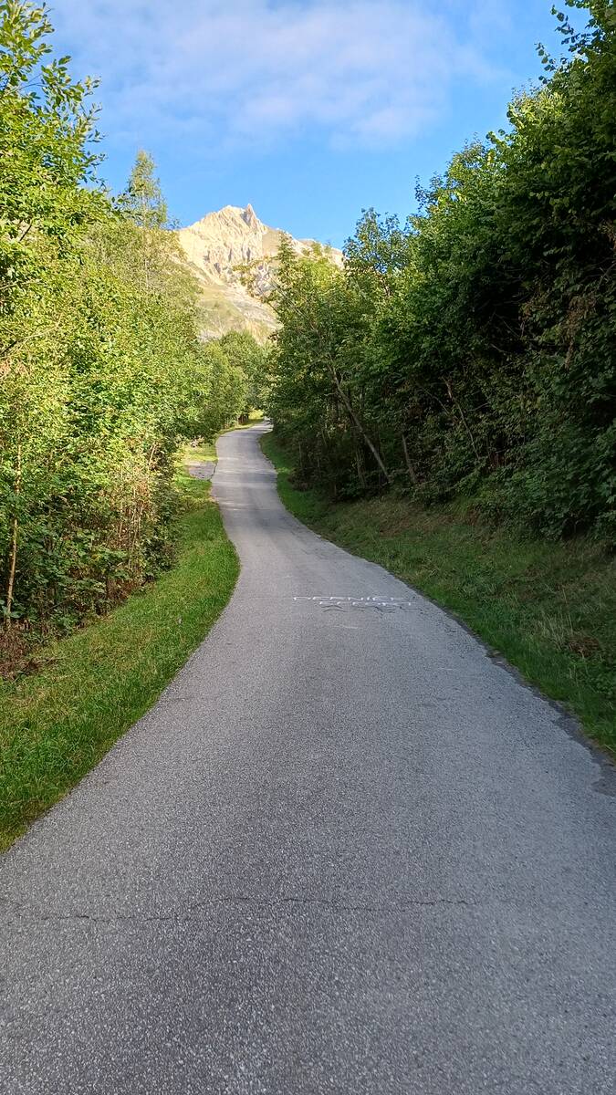 On ne peut pas quitter Termignon sans aller voir la Pleureuse. C'est le monument aux morts de la commune où une femme portant une coiffe savoyarde pleure ses enfants morts. On prend un petit bout de la route nationale et à la première épingle, on file tout droit, au lieu de poursuivre vers le Mont-Cenis. La première moitié de la montée est totalement forestière et ressemble à n'importe quelle montée où les lacets succèdent aux lacets, avec quelques petits temps de repos bienvenus. Et puis lorsque la route s'oriente plein ouest avant une légère descente sous la falaise, le panorama devient grandiose. La dent Parrachée et son petit glacier en sursis nous domine. Le Dôme de la Vanoise enneigé se profile. La route grimpe désormais dans les alpages par une succession de lacets assez acrobatiques. Nous entrons dans le Parc National de la Vanoise. Quelques vieux chalets de pierre plus ou moins délabrés font office de sentinelles. Après le parking de Bellecombe la route se rétrécit et s'en va dans les prés, tandis que le sentier de randonnée s'élève au-dessus d'une faille spectaculaire. Tout retient le regard. Et pourtant, il va falloir redescendre...