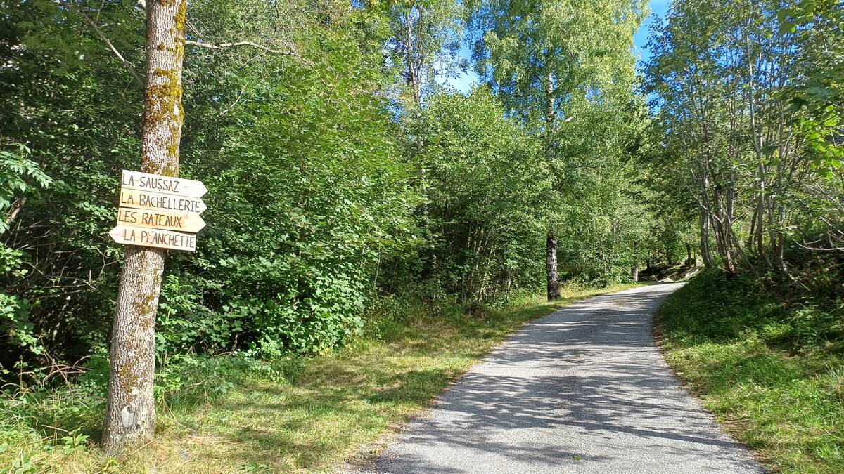 Nous étions partis de St Maurice et nous avions remonté la vallée du Rhône jusqu’un peu avant Sion. Avec le vent dans le nez, ce fut une excellente mise en jambes avant de s'engager dans la vallée de la Morge qui est aussi le départ pour Derborence. Mais très vite, il faut bifurquer sur la droite et grimper dans le vignoble. Il ne reste que 23 km d'ascension ! Des kilomètres qui vont me paraître interminables. La partie forestière, après avoir traversé les villages du piémont, est extrêmement ardue et quelque peu obscure. Je commençai à flancher et nous décidâmes de l'arrêt pique-nique à côté d'un pont, peu avant Visse. Il y avait un chalet non loin, avec tout ce qu'il faut de drapeaux, et de musique pour fêter dignement ce 1er août.